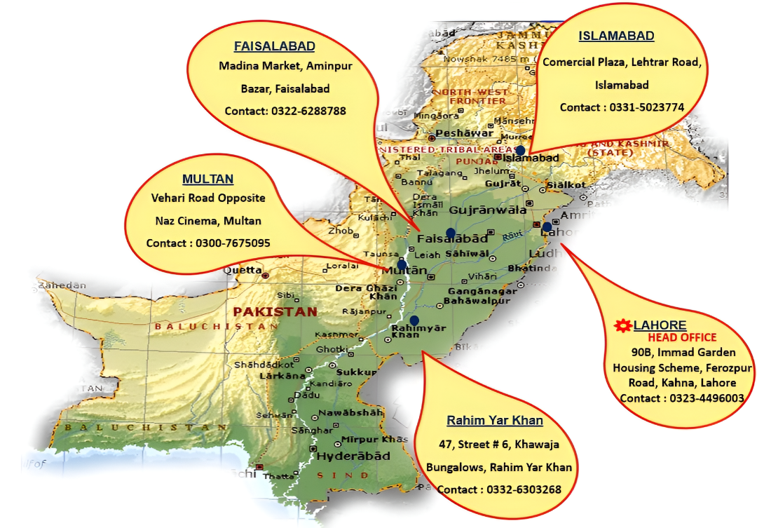 From the capital city of Islamabad to the cultural hub of Lahore, the industrial city of Faisalabad, the commercial center of Multan, and the vibrant market of Rahim Yar Khan, our presence spans across key regions of Pakistan. This extensive network enables us to stay connected with diverse markets, understand regional needs, and deliver our services with speed, consistency, and excellence — no matter where our clients are located.